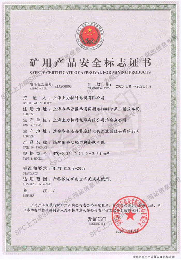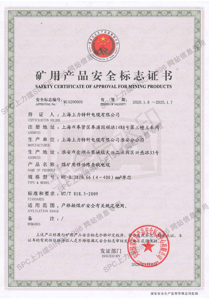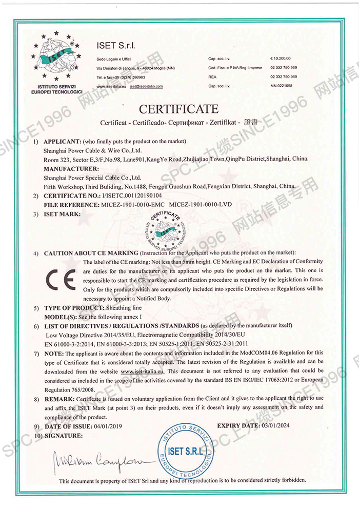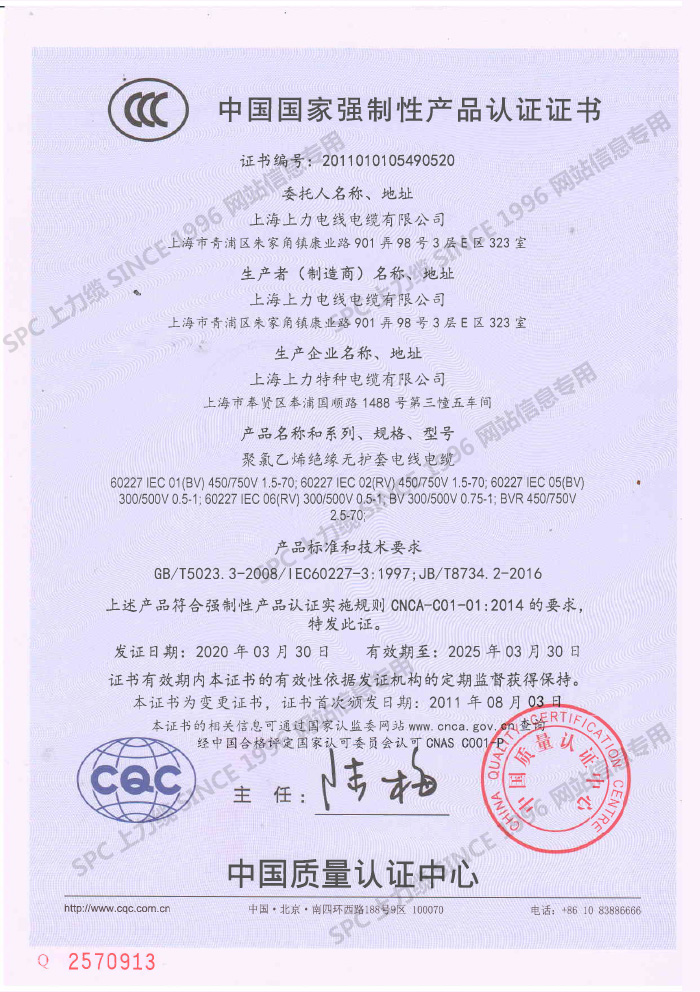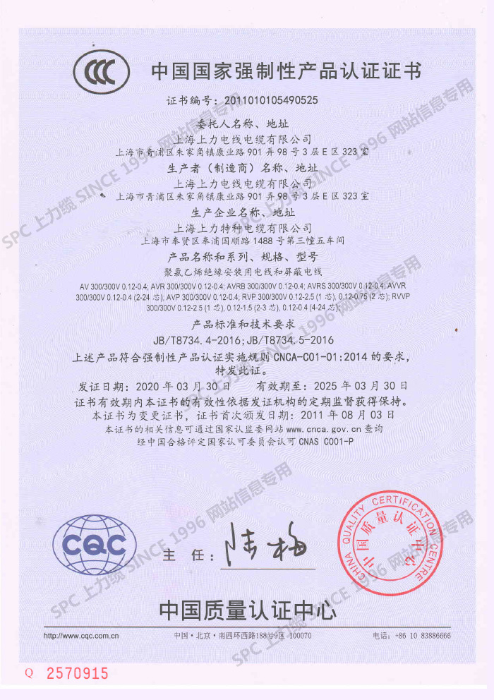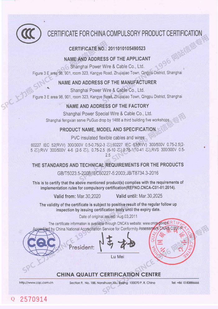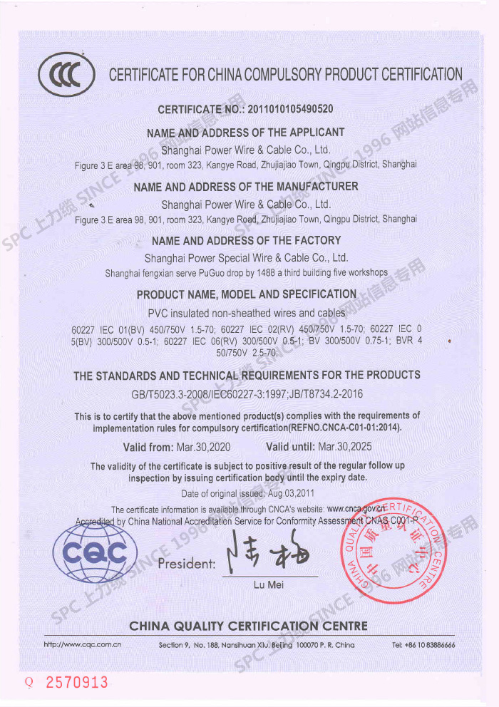 CCC證書單芯線-英文