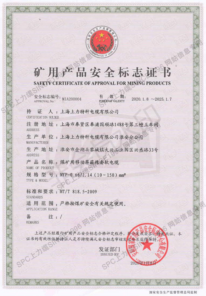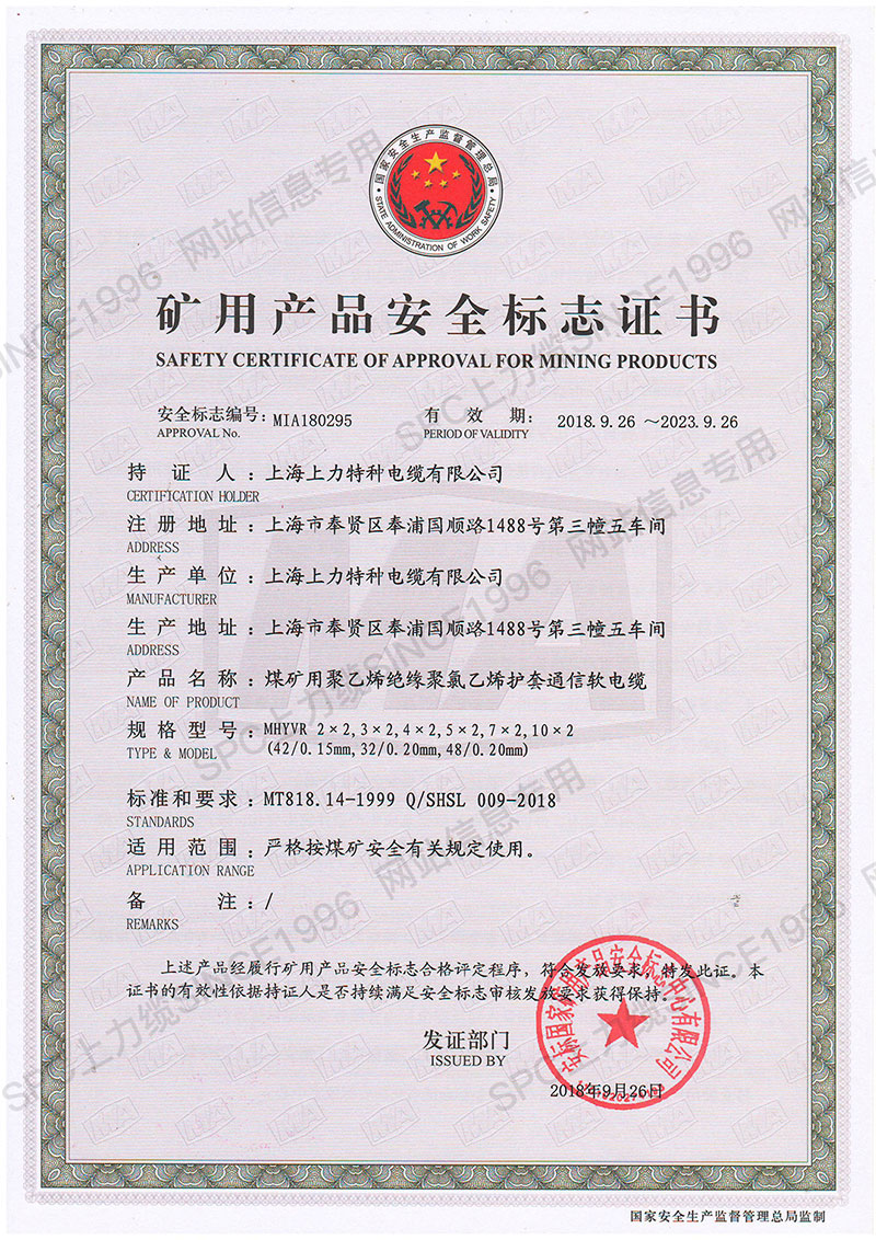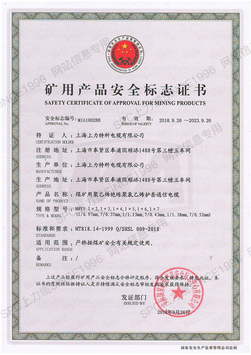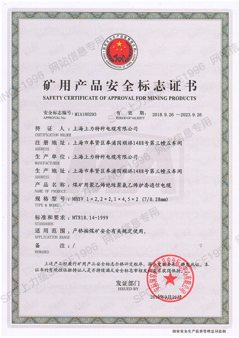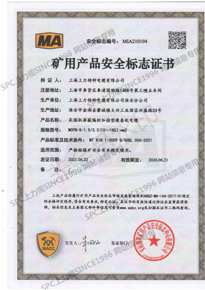 CCC證書單芯線-英文